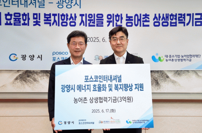 ±¤¾ç½Ã´Â 6¿ù 17ÀÏ ±¤¾ç½Ãû ¸¸³²½Ç¿¡¼­ Æ÷½ºÄÚÀÎÅͳ»¼Å³Î(´ëÇ¥ÀÌ»ç À̰èÀÎ)ÀÌ ±¤¾ç½Ã ¿¡³ÊÁö È¿À²È­ ¹× º¹Áö Çâ»ó Áö¿ø»ç¾÷ÀÇ ÀÏȯÀ¸·Î (Àç)±¤¾ç½Ã»ç¶û³ª´®º¹ÁöÀç´Ü(ÀÌ»çÀå ±èÀç°æ)¿¡ ³ó¾îÃÌ »ó»ýÇù·Â±â±Ý 3¾ï ¿øÀ» Àü´ÞÇß´Ù°í ¹àÇû´Ù. Æ÷½ºÄÚÀÎÅͳ»¼Å³ÎÀº Æ÷½ºÄÚ±×·ì ÀåÀÎÈ­ ȸÀåÀÇ ±¤¾çÁö¿ª ºÀ»ç Ȱµ¿¿¡ À̾î, ±â¾÷ÀÇ »çȸÀû Ã¥ÀÓÀ» ½ÇõÇÏ°í µµ½Ã¿Í ³óÃÌÀÌ »ó»ýÇÏ´Â Áö¼Ó °¡´ÉÇÑ Áö¿ª»çȸ¸¦ Á¶¼ºÇϱâ À§ÇØ À̹ø ±â±ÝÀ» ¸¶·ÃÇß´Ù. º» ±â±ÝÀº ±¤¾ç ³ó¾îÃÌÁö¿ª Ãë¾à°èÃþÀÇ ³ëÈÄ ÁÖÅà ¹× Àå±â¿ä¾ç½Ã¼³À» ´ë»óÀ¸·Î âȣ¼¦½Ã ±³Ã¼, ³Ã³­¹æ±â ¼³Ä¡ µî ¿¡³ÊÁö È¿À²È­ »ç¾÷¿¡ Ȱ¿ëµÉ ¿¹Á¤ÀÌ´Ù. ¶ÇÇÑ Àå¾ÖÀÎ º¹Áö½Ã¼³ÀÇ ³ëÈÄ Â÷·® ±³Ã¼, Áö¿ª¾Æµ¿¼¾ÅÍÀÇ ±³À° Áö¿ø µî ´Ù¾çÇÑ º¹Áö»ç¾÷¿¡µµ Æø³Ð°Ô ¾²ÀÏ °èȹÀÌ´Ù. Á¤ÀÎÈ­ ±¤¾ç½ÃÀåÀº ¡°±¤¾ç½Ã´Â ³óÃ̰ú µµ½Ã°¡ Á¶È­¸¦ ÀÌ·ç¸ç »ó»ýÇÏ´Â µµ³óº¹ÇÕµµ½Ã·Î, À̹ø ³ó¾îÃÌ »ó»ýÇù·Â±â±ÝÀÌ ±× Àǹ̸¦ ´õ¿í ºû³ª°Ô ÇÑ´Ù¡±¸ç ¡°°¨µ¿½Ã´ë, µû¶æÇÑ ±¤¾ç ½ÇÇö¿¡ ±â¿©ÇØ ÁֽŠÆ÷½ºÄÚÀÎÅͳ»¼Å³Î¿¡ ±íÀÌ °¨»çµå¸°´Ù¡±°í ¹àÇû´Ù. Á¤»ó°æ Æ÷½ºÄÚÀÎÅͳ»¼Å³Î °æ¿µÁö¿øº»ºÎÀåÀº ¡°¾ÕÀ¸·Îµµ ±¤¾ç½Ã¿Í ±ä¹ÐÈ÷ Çù·ÂÇØ ÇÔ²² ¿ô°í ¼ºÀåÇÏ´Â °Ç°­Çϰí Ȱ·Â ³ÑÄ¡´Â Áö¿ª°øµ¿Ã¼¸¦ ¸¸µé¾î °¡°Ú´Ù¡±¸ç ¡°À̹ø 3¾ï ¿øÀÇ ±â±ÝÀÌ ±¤¾ç ³ó¾îÃÌ ÇöÀåÀÇ ½ÇÁúÀû »îÀÇ Áú Çâ»ó¿¡ ±â¿©Çϰí, Áö¼Ó °¡´ÉÇÑ °øµ¿Ã¼ Çü¼º¿¡ ¼ÒÁßÈ÷ ¾²ÀÌ±æ ±â´ëÇÑ´Ù¡±°í ¸»Çß´Ù. ±èÀç°æ ±¤¾ç½Ã»ç¶û³ª´®º¹ÁöÀç´Ü ÀÌ»çÀåÀº ¡°Åë Å« ±âºÎ¸¦ ÅëÇØ ±â¾÷ÀÇ »çȸÀû Ã¥ÀÓÀ» ¸ð¹üÀûÀ¸·Î ½ÇÃµÇØ ÁֽŠÆ÷½ºÄÚÀÎÅͳ»¼Å³Î¿¡ Áø½ÉÀ¸·Î °¨»çµå¸°´Ù¡±¸ç ¡°±âŹµÈ ±â±ÝÀº ±¤¾ç½Ã »çȸº¹Áö ÁõÁøÀ» À§ÇÑ ´Ù¾çÇÑ »ç¾÷¿¡ Àû±ØÀûÀ¸·Î ÅõÀ﵃ °Í¡±À̶ó°í ¹àÇû´Ù. ÇÑÆí, Æ÷½ºÄÚÀÎÅͳ»¼Å³ÎÀº ±¤¾ç ±¹°¡»ê´Ü ³» LNG Å͹̳ΠÁõ¼³°ú ±¸¿ªÀü±â Áý´Ü¿¡³ÊÁö »ç¾÷À» ÃßÁøÇϰí ÀÖÀ¸¸ç, Æ÷½ºÄÚ ±¤¾çÁ¦Ã¶¼Ò¿Í Çù·ÂÇØ ¹«Àå¾Ö µµ½Ã Á¶¼ºÀ» À§ÇÑ °æ»ç·Î ¼³Ä¡»ç¾÷µµ ÇÔ²² ÁøÇà ÁßÀÌ´Ù. ÀÌ ¹Û¿¡µµ »çȸº¹Áö½Ã¼³ ž籤 ¼³ºñ ¼³Ä¡, ¾È½É ±Í°«±æ Á¶¼º, ÀڸŸ¶À» ÀÏ¼Õ µ½±â µî ´Ù¾çÇÑ »çȸ°øÇåȰµ¿À» ²ÙÁØÈ÷ ÆîÄ¡°í ÀÖ´Ù.