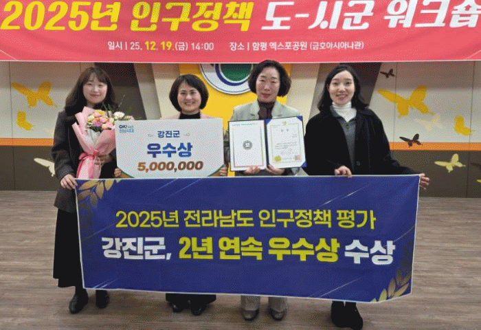 °Áø±ºÀÌ Àü¶ó³²µµ°¡ ½Ç½ÃÇÑ 2025³â Àα¸Á¤Ã¥ ¿ì¼ö ½Ã¡¤±º Æò°¡¿¡¼ ¡®¿ì¼ö»ó¡¯À» ¼ö»óÇß´Ù.