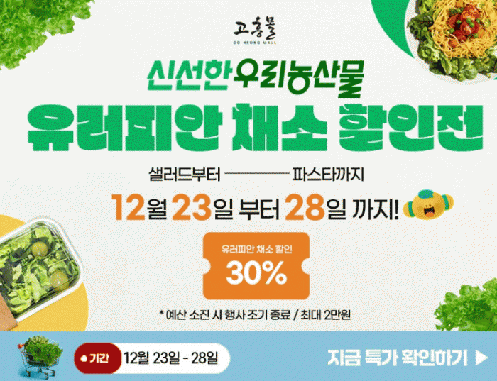 °íÈﱺÀÌ ¿î¿µÇÏ´Â ¿Â¶óÀÎ ³ó¼öÃàÆ¯»ê¹° ¼îÇθô ¡®°íÈï¸ô¡¯ÀÌ ¿¬¸»À» ¸Â¾Æ 12¿ù 23ÀϺÎÅÍ 28ÀϱîÁö ¡®»ø·¯µåºÎÅÍ ÆÄ½ºÅ¸±îÁö, À¯·¯ÇÇ¾È Ã¤¼Ò ÇÒÀÎÀü¡¯À» ÁøÇàÇÑ´Ù. À̹ø ±âȹÀüÀº ¿¬¸» ȨÄȨ´ÙÀÌ´× ¼ö¿ä Áõ°¡¿¡ ¸ÂÃç À¯·¯ÇÇ¾È Ã¤¼Ò¸¦ ÇÕ¸®ÀûÀÎ °¡°Ý¿¡ Á¦°øÇϱâ À§ÇØ ¸¶·ÃµÆ´Ù. »ø·¯µå¿Í ÆÄ½ºÅ¸, ºê·±Ä¡ µî ´Ù¾çÇÑ ¿ä¸®¿¡ Ȱ¿ëµµ°¡ ³ôÀº ä¼Ò¸¦ Áß½ÉÀ¸·Î ±¸¼ºÇØ ¼ÒºñÀÚÀÇ ¼±ÅÃ ÆøÀ» ³ÐÇû´Ù. Çà»ç ±â°£ °íÈï¸ô¿¡¼­´Â 30% ÇÒÀÎ ÄíÆùÀ» Á¦°øÇØ À¯·¯ÇÇ¾È Ã¤¼Ò¸¦ º¸´Ù ÇÕ¸®ÀûÀÎ °¡°ÝÀ¸·Î ±¸¸ÅÇÒ ¼ö ÀÖµµ·Ï Çß´Ù. ½Å¼±µµ¿Í ǰÁúÀ» ¿ì¼±À¸·Î ¾ö¼±ÇÑ »óǰÀ» ¼±º¸¿© °¡Á¤ ³» °£Æí½ÄºÎÅÍ ¿¬¸» ÆÄƼ ¸Þ´º±îÁö Æø³Ð°Ô Ȱ¿ëÇÒ ¼ö ÀÖ´Ù. °íÈï¸ô °ü°èÀÚ´Â ¡°¿¬¸»¿¬½Ã¸¦ ¸Â¾Æ Áý¿¡¼­ °£ÆíÇϸ鼭µµ °Ç°­ÇÑ ½Ä»ç¸¦ ÁغñÇÏ·Á´Â ¼ÒºñÀÚ ¼ö¿ä¸¦ ¹Ý¿µÇØ À̹ø ±âȹÀüÀ» ¸¶·ÃÇß´Ù¡±¸ç ¡°¾ÕÀ¸·Îµµ °èÀý°ú ¼Òºñ Æ®·»µå¿¡ ¸ÂÃá ´Ù¾çÇÑ ±âȹÀüÀ» ÅëÇØ Áö¿ª ³ó»ê¹° ¼Òºñ È®´ë¿Í ³ó°¡ ¼Òµæ Áõ´ë¿¡ ±â¿©Çϰڴ١±°í ¸»Çß´Ù. ÇÑÆí, °íÈï¸ôÀº Áö¿ª ³ó¼öÃàÆ¯»ê¹°ÀÇ ¾ÈÁ¤ÀûÀÎ ¿Â¶óÀÎ ÆÇ·Î ±¸ÃàÀ» À§ÇØ Áö¼ÓÀûÀÎ »óǰ ¹ß±¼°ú ±âȹÀüÀ» ÃßÁøÇØ ¿Â °á°ú, ´©Àû ¸ÅÃâ 100¾ï ¿ø µ¹ÆÄ¿Í ´©Àû ȸ¿ø 5¸¸ ¸í ´Þ¼ºÀ̶ó´Â ¼º°ú¸¦ °ÅµÎ¸ç, ±º Á÷¿µ ¿Â¶óÀÎ ¼îÇθô·Î¼­ÀÇ ÀÔÁö¸¦ °ø°íÈ÷ Çϰí ÀÖ´Ù. ±ºÀº ¾ÕÀ¸·Îµµ ¼ÒºñÀÚ ¼ö¿ä¸¦ ¹Ý¿µÇÑ ¸ÂÃãÇü ±âȹÀü°ú ½ÇÁúÀûÀÎ ÀÔÁ¡¾÷ü Áö¿øÀ» ÅëÇØ Áö¿ª ³ó°¡ ¼Òµæ Áõ´ë¿Í Áö¿ª°æÁ¦ Ȱ¼ºÈ­¿¡ ±â¿©ÇØ ³ª°¥ °èȹÀÌ´Ù.