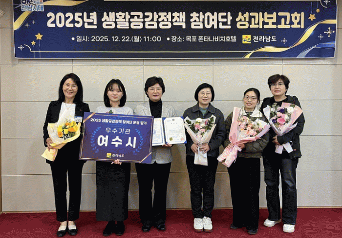 ¿©¼ö½Ã°¡ 2025³â »ýȰ°ø°¨Á¤Ã¥ Âü¿©´Ü Æò°¡¿¡¼­ Àü³²µµ ½Ã¡¤±º °¡¿îµ¥ 1À§¸¦ Â÷ÁöÇØ µµÁö»ç ±â°ü ǥâÀ» ¼ö»óÇß´Ù. ÀÌ¿Í ÇÔ²² Âü¿©´Ü ´ëÇ¥´Â ÇàÁ¤¾ÈÀüºÎ Àå°ü ǥâÀ», ¾÷¹« ´ã´ç °ø¹«¿øÀº µµÁö»ç ǥâÀ» ¼ö»óÇϸç 3°ü¿ÕÀ» ´Þ¼ºÇÏ´Â ÀÇ¹Ì ÀÖ´Â ¼º°ú¸¦ °Åµ×´Ù. À̹ø Æò°¡´Â µµ³» 21°³ ½Ã¡¤±ºÀ» ´ë»óÀ¸·Î ÁøÇàµÆÀ¸¸ç ¿ÃÇØ 3¿ùºÎÅÍ 10¿ù±îÁö ÃßÁøÇÑ È°µ¿¿¡ ´ëÇØ Á¦¾È Âü¿©µµ, Âü¿©´Ü Ȱ¼ºÈ­, È«º¸½ÇÀû µî 3°³ ºÐ¾ß¸¦ Áß½ÉÀ¸·Î 1Â÷ Á¤·®Æò°¡¿Í 2Â÷ Á¤¼ºÆò°¡¸¦ °ÅÃÄ Á¾ÇÕÀûÀ¸·Î ÀÌ·ïÁ³´Ù. ¿©¼ö½Ã´Â ¡ãÈ­¾ç¸é À̸ñ¸¶À»È¸°ü Á¤±â ³ª´®¡¤ºÀ»çȰµ¿ ¡ã2026¿©¼ö¼¼°è¼¶¹Ú¶÷ȸ È«º¸È°µ¿ ¡ãSNS µîÀ» Ȱ¿ëÇÑ È°µ¿ È«º¸½ÇÀû µî¿¡¼­ ³ôÀº Æò°¡¸¦ ¹Þ¾Ò´Ù. ƯÈ÷ ¿©¼ö½Ã´Â Á¦10±â »ýȰ°ø°¨Á¤Ã¥ Âü¿©´Ü°ú ÇÔ²² ¸Å¿ù ¸¶Áö¸· ÁÖ ¼ö¿äÀÏ Á¤±â ³ª´®¡¤ºÀ»çȰµ¿°ú ÀÚü °£´ãȸ¸¦ ¿î¿µÇÏ°í ¼±ÁøÁö °ßÇÐ, Á¦¾È°æÁø´ëȸ Âü¿© µî ´Ù¾çÇÑ Á¤Ã¥ Âü¿© Ȱµ¿À» ÃßÁøÇϸç Âü¿©´Ü Ȱ¼ºÈ­¿Í ¿ª·® °­È­¸¦ À̲ø¾î ¿Ô´Ù. ½Ã °ü°èÀÚ´Â ¡°À̹ø ¼ö»óÀº ¿©¼ö½Ã »ýȰ°ø°¨Á¤Ã¥ Âü¿©´Ü°ú ÇÔ²² ÃßÁøÇÑ Âü¿©´Ü Ȱ¼ºÈ­¸¦ À§ÇÑ ³ë·ÂÀÌ ÀÎÁ¤¹ÞÀº °á°ú¡±¶ó¸ç ¡°¾ÕÀ¸·Îµµ Âü¿©´ÜÀÌ Á¤Ã¥ ¸ð´ÏÅ͸µ°ú ½ÃÁ¤ ¹ßÀü¿¡ µµ¿òÀÌ µÇ´Â ´Ù¾çÇÑ Á¤Ã¥ Á¦¾ÈÀ» Ȱ¹ßÇÏ°Ô ÃßÁøÇÒ ¼ö ÀÖµµ·Ï Àû±Ø Áö¿øÇØ ³ª°¡°Ú´Ù¡±°í ¸»Çß´Ù.