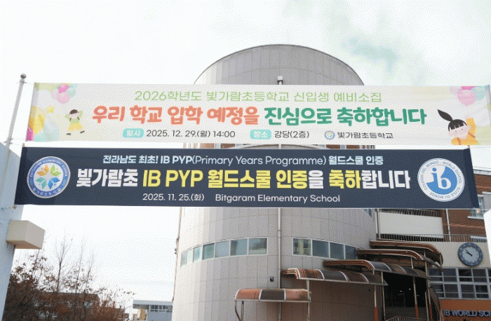 Àü¶ó³²µµ ³ªÁֽð¡ ºû°¡¶÷ÃʵîÇб³ÀÇ ±¹Á¦ ¹ÙÄ®·Î·¹¾Æ(IB?International Baccalaureate) ¿ùµå½ºÄð ÀÎÁõÀ» °è±â·Î Àü¶ó³²µµ ÃÖÃÊ·Î ÃÊÁß°í IB ±³À°°úÁ¤ Àü ´Ü°è¸¦ °®Ãá Áö¿ªÀ¸·Î ÀÚ¸®¸Å±èÇÏ¸ç ¹Ì·¡Çü °ø±³À° ¸ðµ¨ ±¸Ãà¿¡ ¼Óµµ¸¦ ³»°í ÀÖ´Ù. 24ÀÏ ³ªÁֽÿ¡ µû¸£¸é ºû°¡¶÷ÃʵîÇб³´Â Áö³­ 11¿ù 25ÀÏ ±¹Á¦ ¹ÙÄ®·Î·¹¾Æ º»ºÎ·ÎºÎÅÍ Ãʵî°úÁ¤(PYP) ¿ùµå½ºÄð ÀÎÁõÀ» ȹµæÇßÀ¸¸ç À̸¦ ±â³äÇÏ´Â ÀÎÁõ½ÄÀÌ 12¿ù 23ÀÏ ºû°¡¶÷ÃʵîÇб³¿¡¼­ °³ÃֵƴÙ. À̳¯ ÀÎÁõ½Ä¿¡´Â À±º´Å ³ªÁÖ½ÃÀå, ±è´ëÁß Àü³²µµ±³À°°¨ µîÀÌ Âü¼®ÇØ IB ¿ùµå½ºÄð ÀÎÁõ ȹµæÀ» ÃàÇÏÇϰí Áö¿ª ±³À° ¹ßÀüÀ» À§ÇÑ Çù·Â ÀÇÁö¸¦ ¹àÇû´Ù. ³ªÁֽô ¸íǰ±³À°µµ½Ã¸¦ ¼±¾ðÇÑ ÀÌÈÄ 2023³âºÎÅÍ IB ±³À°°úÁ¤À» µµÀÔÇØ ºû°¡¶÷ÃʵîÇб³¸¦ °ü½ÉÇб³¿Í Èĺ¸Çб³ ´Ü°è¸¦ °ÅÃÄ °ø½Ä ÀÎÁõ±îÁö ü°èÀûÀ¸·Î Áö¿øÇØ ¿ÔÀ¸¸ç ±× °á°ú ±¹Á¦ ±âÁØ¿¡ ºÎÇÕÇÏ´Â IB ¿ùµå½ºÄð·Î ÃÖÁ¾ ¼±Á¤µÇ´Â ¼º°ú¸¦ °Åµ×´Ù. À̹ø ÀÎÁõ¿¡ µû¶ó Áßµî°úÁ¤(MYP)À» ¿î¿µ ÁßÀÎ ³ªÁÖ±ÝõÁßÇб³¿Í °íµî°úÁ¤(DP)À» ¿î¿µ ÁßÀÎ Àü³²¿Ü±¹¾î°íµîÇб³±îÁö ¿¬°èµÇ¸é¼­ ³ªÁֽô Àü¶ó³²µµ ÃÖÃÊ·Î ÃÊÁß°í IB ±³À°°úÁ¤ Àü ´Ü°è¸¦ ¸ðµÎ °®Ãá Áö¿ªÀ¸·Î µµ¾àÇÏ°Ô µÆ´Ù. ÀÌ´Â Çлý ¼ºÀå ´Ü°è¿¡ ¸ÂÃá Ž±¸ Á᫐ ±³À°ÀÌ ´ÜÀý ¾øÀÌ À̾îÁú ¼ö ÀÖ´Â ±â¹ÝÀ» ¸¶·ÃÇÑ °ÍÀ¸·Î Áö¿ª °ø±³À°ÀÌ ±¹Á¦ ±³À° ±âÁØ¿¡ ºÎÇÕÇÏ´Â ±³À° ¸ðµ¨·Î ÀüȯµÇ´Â Áß¿äÇÑ ÀüȯÁ¡À̶ó´Â Æò°¡¸¦ ¹Þ°í ÀÖ´Ù. IB ±³À°°úÁ¤Àº °³³ä ÀÌÇØ¿Í ޱ¸ ÇнÀÀ» Áß½ÉÀ¸·Î ÇлýÀÇ »ç°í·Â°ú ¹®Á¦ ÇØ°á ´É·Â, ÀÚ±âÁÖµµ¼ºÀ» Ű¿ì´Â ¿ª·® Á᫐ ±³À°°úÁ¤À¸·Î ¼¼°è °¢±¹ÀÇ ±¹Á¦Çб³¿Í °ø±³À° ÇöÀå¿¡¼­ Æø³Ð°Ô ¿î¿µµÇ°í ÀÖ´Ù. À±º´Å ³ªÁÖ½ÃÀåÀº ¡°À̹ø IB ¿ùµå½ºÄð ÀÎÁõÀº Àü³² ÃÖÃÊ·Î ÃÊÁß°í ¿¬°è IB ±³À°Ã¼°è°¡ ±¸ÃàµÆ´Ù´Â Á¡¿¡¼­ ¸Å¿ì ¶æ±í´Ù¡±¸ç ¡°IB ±³À°À» ÅëÇØ Çлý ÁÖµµ¼º, ޱ¸ ¿ª·®, ¼¼°è ½Ã¹Î¼ºÀ» Ű¿ì´Â ¹Ì·¡Çü °ø±³À° ¸ðµ¨ÀÌ Áö¿ª Àü¹ÝÀ¸·Î È®»êµÇ±æ ±â´ëÇÑ´Ù¡±°í ¸»Çß´Ù. ÇÑÆí ³ªÁֽô ¾ÕÀ¸·Îµµ ±³À°Áö¿øÃ»°úÀÇ ±ä¹ÐÇÑ Çù·ÂÀ» ÅëÇØ IB ±³À°°úÁ¤ ¿î¿µ ±â¹ÝÀ» Áö¼ÓÀûÀ¸·Î °­È­ÇÏ°í ±¹Á¦Àû ±âÁØ¿¡ ºÎÇÕÇÏ´Â ±³À°È¯°æ Á¶¼ºÀ» ÅëÇØ ¹Ì·¡ ÀÎÀç ¾ç¼ºÀ» ¼±µµÇÏ´Â ±³À°µµ½Ã·Î ÀÚ¸®¸Å±èÇØ ³ª°¥ °èȹÀÌ´Ù.