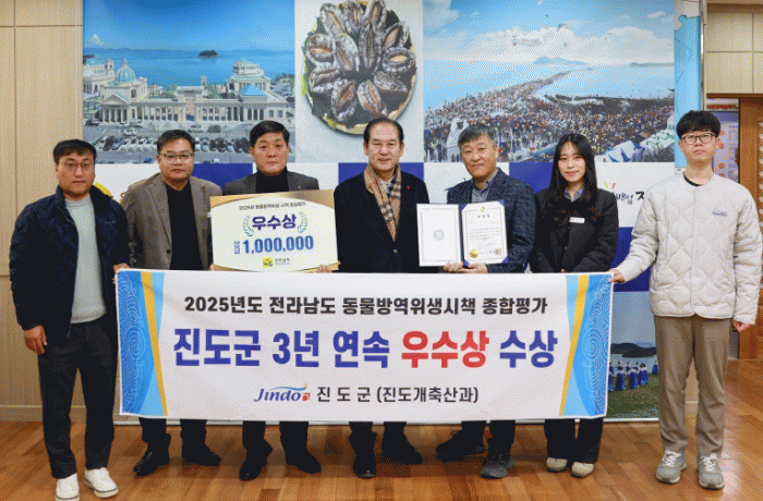 Áøµµ±ºÀº Àü¶ó³²µµ¿¡¼­ ÁÖ°üÇÑ ¡®2025³â µ¿¹°¹æ¿ªÀ§»ý½ÃÃ¥ Á¾ÇÕÆò°¡¡¯¿¡¼­ ¿ì¼ö»óÀ» ¹ÞÀ¸¸ç, 3³â ¿¬¼Ó ¿ì¼ö Áö¹æÀÚÄ¡´Üü·Î ¼±Á¤µÆ´Ù. À̹ø Æò°¡´Â Àü¶ó³²µµÀÇ 22°³ ½Ã±ºÀ» ´ë»óÀ¸·Î µ¿¹°¹æ¿ª°ú Ãà»ê¹° À§»ý ½ÃÃ¥ ¼º°ú µîÀ» Á¡°ËÇϱâ À§ÇØ ¸Å³â ½Ç½ÃÇÏ´Â °ÍÀ¸·Î, ¹æ¿ª Á¤Ã¥ ¼ö¸³, °¡ÃàÀü¿°º´ ¿¹¹æ°ú ´ëÀÀ, ÇöÀå ¹æ¿ª°ú Ãà»ê¹° À§»ý °ü¸® µîÀ» Á¾ÇÕÀûÀ¸·Î ½É»çÇÑ´Ù. Áøµµ±ºÀº ±¸Á¦¿ª°ú °íº´¿ø¼º Á¶·ùÀÎÇ÷翣ÀÚ(AI) µî ¡ãÁÖ¿ä °¡ÃàÀü¿°º´¿¡ ´ëÇÑ ¼±Á¦Àû ¹æ¿ª Á¶Ä¡ ¡ã»ó½Ã ¹æ¿ªÃ¼°è ¿î¿µ ¡ã°¡Ãà ¹æ¿ª ½ÇÅ Á¡°Ë °­È­ ¡ãÃà»ê¹° ¾ÈÀü°ü¸® ºÐ¾ß¿¡¼­ ³ôÀº Æò°¡¸¦ ¹ÞÀ¸¸ç ¼ö»óÀÇ ¿µ¿¹¸¦ ¾È¾Ò´Ù. Áøµµ±º °ü°èÀÚ´Â ¡°À̹ø ¼ö»óÀº ÇöÀå Áß½ÉÀÇ Ã¶ÀúÇÑ ¹æ¿ª Ȱµ¿°ú ü°èÀûÀÎ À§»ý °ü¸® ³ë·ÂÀÌ ÀÎÁ¤¹ÞÀº ¼º°ú´Ù¡±¶ó¸ç, ¡°¾ÕÀ¸·Îµµ ½ÇÈ¿¼º ÀÖ´Â °¡Ãà ¹æ¿ª Á¤Ã¥À» ÆîÃÄ °¡ÃàÀü¿°º´ ¾ø´Â ¡®Ã»Á¤ Áøµµ¡¯ÀÇ À§»óÀ» ±»°ÇÈ÷ ÁöÄѰ¡°Ú´Ù¡±¶ó°í ¸»Çß´Ù.