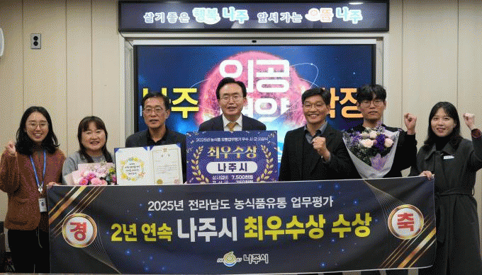 ³ªÁֽð¡ Àü¶ó³²µµ ÁÖ°ü ¡®2025 ³ó½ÄǰÀ¯Åë ¾÷¹«Æò°¡¡¯¿¡¼­ 2³â ¿¬¼Ó ÃÖ¿ì¼ö»óÀ» ¼ö»óÇß´Ù.