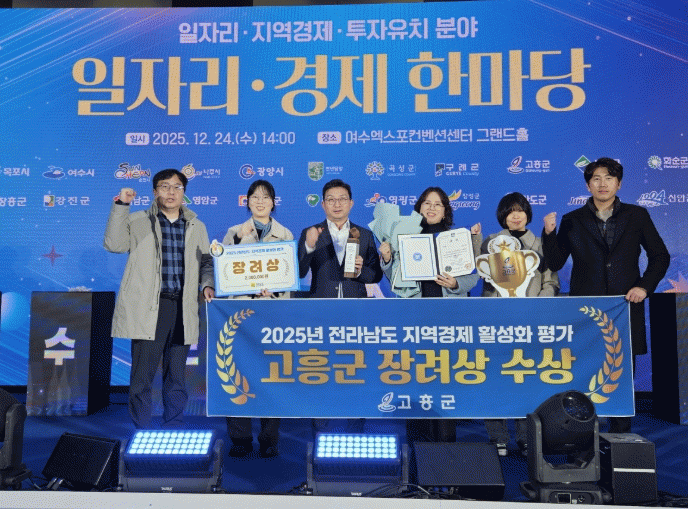 °íÈﱺ, 2025³â Àü¶ó³²µµ Áö¿ª°æÁ¦ Ȱ¼ºÈ­ Æò°¡ ¡®Àå·Á»ó¡¯ ¼ö»ó