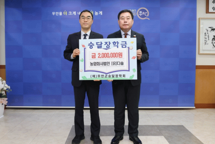 ¹«¾È±º ³ó¾÷ȸ»ç¹ýÀÎ ´Ù¼Ö ±èÁö¼ö ´ëÇ¥, ½Â´ÞÀåÇÐ±Ý 200¸¸ ¿ø ±âŹ
