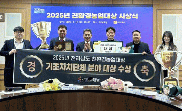 ÇØ³²±ºÀÌ Àü¶ó³²µµ¡®2025³â ģȯ°æ³ó¾÷´ë»ó¡¯Æò°¡¿¡¼­ ´ë»óÀ» ¼ö»óÇß´Ù. 2³â¿¬¼Ó ´ë»ó ¼ö»óÀ¸·Î, ¿ì¸®³ª¶ó ģȯ°æ³ó¾÷ ¼±µµ ÁöÀÚüÀÇ À§»óÀ» È®°íÈ÷ Çß´Ù. ÇØ³²±ºÀº »ó»ç¾÷ºñ 8,000¸¸¿øµµ È®º¸Çß´Ù. Àü¶ó³²µµ ģȯ°æ³ó¾÷´ë»óÀº ģȯ°æ³ó»ê¹° ÀÎÁõ¸éÀû È®´ë¿Í ³ó»ê¹° ¾ÈÀü¼º °ü¸® ü°è ±¸Ãà, À¯±â³ó Áß½ÉÀÇ Áö¼Ó °¡´ÉÇÑ ³ó¾÷ ½Çõ ¼º°ú µîÀ» Á¾ÇÕÀûÀ¸·Î Æò°¡ÇØ ¿ì¼ö ½Ã±º°ú ³ó¾÷ÀÎÀ» ¼±Á¤ÇÏ´Â Á¦µµ´Ù. ÇØ³²±ºÀº ǰ¸ñ ´Ù¾çÈ­¿Í °£Ã´Áö¸¦ Ȱ¿ëÇÑ Ä£È¯°æ³ó¾÷ ´ÜÁö Á¶¼ºÀ¸·Î ½Å±Ô ÀÎÁõ¸éÀûÀ» Å©°Ô È®´ëÇÏ¸ç ³ôÀº Æò°¡¸¦ ¹Þ¾Ò´Ù. ÇØ³²±ºÀº Áö³­ÇØ Àü±¹ ÃÖ´ë ±Ô¸ðÀÎ 4,940haÀÇ Ä£È¯°æ³ó»ê¹° ÀÎÁõ¸éÀûÀ» ´Þ¼ºÇß´Ù. À¯±â³ó 2,496ha, ¹«³ó¾à 2,444ha·Î Àü³â ´ëºñ 476ha°¡ Áõ°¡ÇßÀ¸¸ç, Àúź¼Ò ³ó¾÷ ºÐ¾ß¿¡¼­µµ 1,089haÀÇ ÀÎÁõ¸éÀûÀ¸·Î Àü±¹ ÃÖ´ë ±â·ÏÀ» ¼¼¿ü´Ù. ¶ÇÇÑ Ä£È¯°æ³ó¾÷ÀÇ Á¶Á÷È­¿Í ´ÜÁöÈ­¸¦ ÅëÇØ ³ó°¡ÀÇ »ý»ê ºÎ´ãÀ» ÁÙÀÌ°í ¾ÈÁ¤ÀûÀÎ °æ¿µ ±â¹ÝÀ» ±¸ÃàÇß´Ù. º­ Á᫐ Àç¹è¿¡¼­ ¹þ¾î³ª °ú¼ö¿Í ä¼Ò µî 98°³ ǰ¸ñÀ¸·Î ÀÎÁõÀ» È®´ë, Àüü ÀÎÁõ¸éÀûÀÇ 47%¿¡ ÇØ´çÇÏ´Â 2,339ha°¡ °ú¼ö¡¤Ã¤¼Ò µîÀ¸·Î ´Ù¾çÇÑ Ç°¸ñÀ¸·Î ÀüȯµÇ¸ç Áö¿ª ³ó¾÷ÀÇ ÁúÀû ¼ºÀåÀ» ÀÌ·ï³Â´Ù. °³ÀÎ ºÎ¹®¿¡¼­µµ ¼º°ú°¡ À̾îÁ³´Ù. Ãà»ê ºÐ¾ß¿¡¼­´Â ÇØ³²À¾ ÀÌÇ׸²¾¾°¡ ģȯ°æ¡¤Àúź¼Ò Ãà»ê ½Çõ ¼º°ú¸¦ ÀÎÁ¤¹Þ¾Æ ÃÖ¿ì¼ö»óÀ» ¼ö»óÇß´Ù. ±º °ü°èÀÚ´Â ¡°À̹ø ¼ö»óÀº ģȯ°æ³ó¾÷À» ½ÇÃµÇØ ¿Â ³ó¾÷ÀεéÀÇ ³ë·Â°ú ÇàÁ¤ÀÇ Áö¼ÓÀûÀÎ Áö¿øÀÌ ÇÔ²² ¸¸µç °á°ú¡±¶ó¸ç ¡°¾ÕÀ¸·Îµµ ģȯ°æ³ó¾÷ÀÌ ÇöÀå¿¡ ¾ÈÁ¤ÀûÀ¸·Î Á¤ÂøÇÒ ¼ö ÀÖµµ·Ï Áö¿øÀ» È®´ëÇϰí, ¾ÈÀüÇÑ ¸Ô°Å¸® »ý»ê°ú Áö¼Ó °¡´ÉÇÑ ³ó¾÷ ¹ßÀü¿¡ Èû¾²°Ú´Ù¡±°í ¹àÇû´Ù.