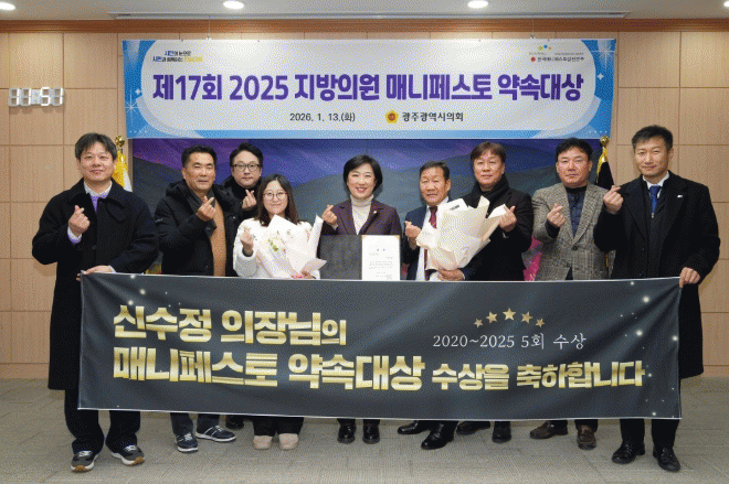 ±¤ÁÖ±¤¿ª½ÃÀÇȸ ½Å¼öÁ¤ ÀÇ¿ø ¡®Áö¹æÀÇ¿ø ¸Å´ÏÆä½ºÅä ¾à¼Ó´ë»ó¡¯ 5°ü¿Õ ´Þ¼º