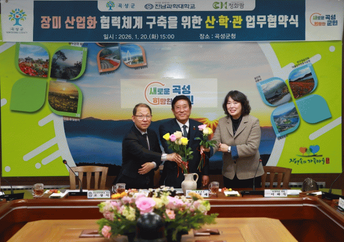 Àü³² °î¼º±ºÀº Àå¹Ì»ê¾÷È­ÀÇ º»°ÝÀûÀÎ ÃßÁøÀ» À§ÇØ Áö³­ 20ÀÏ ±ºÃ» ¼ÒÅ븶·ç¿¡¼­ Àü³²°úÇдëÇб³, ÁÖ½Äȸ»ç ûȭÆÊ(´ëÇ¥ ÀÌÈ­¼÷)°ú ÇÔ²² ¡®°î¼º±º Àå¹Ì»ê¾÷È­ ¹× RISE ¿¬°è »ê¡¤ÇС¤°ü Çù·Âü°è ±¸ÃàÀ» À§ÇÑ ¾÷¹«Çù¾à¡¯À» ü°áÇß´Ù°í 21ÀÏ ¹àÇû´Ù. À̹ø Çù¾àÀº ÇØ¸¶´Ù ¼ö½Ê¸¸ ¸íÀÌ Ã£´Â ¡®°î¼º¼¼°èÀå¹ÌÃàÁ¦¡¯ÀÇ ºê·£µå ÆÄ¿ö¸¦ 6Â÷ »ê¾÷À¸·Î È®ÀåÇÏ¿©, Áö¿ªÀÇ ½Å¼ºÀå µ¿·ÂÀ» È®º¸Çϰí Áö¿ª ¼Ò¸ê À§±â¿¡ ´ëÀÀÇϱâ À§ÇØ ¸¶·ÃµÆ´Ù. Çù¾à¿¡ µû¶ó ¼¼ ±â°üÀº ¡ãÀå¹Ì À°¹¦ ¹× ±â´É¼º ¼ÒÀç ¿¬±¸(R&D) ¡ã½ÃÀ强 ÀÖ´Â ½ÃÁ¦Ç° °³¹ß ¡ãüÇ衤°ü±¤ ÇÁ·Î±×·¥ ¿î¿µ µî Àå¹Ì»ê¾÷ÀÇ Àü(îï) Áֱ⿡ °ÉÃÄ ±ä¹ÐÈ÷ Çù·ÂÇϱâ·Î Çß´Ù. ƯÈ÷, À̹ø Çù¾àÀº ´ëÇÐ Áö¿ø ü°èÀÎ ¡®¶óÀÌÁî(RISE, Áö¿ªÇõ½ÅÁ᫐ ´ëÇÐÁö¿øÃ¼°è)¡¯ »ç¾÷°ú ¿¬°èÇØ ÃßÁøµÈ´Ù´Â Á¡¿¡¼­ Àǹ̰¡ Å©´Ù. Àü³²°úÇдëÇб³´Â Àå¹Ì ¼ÒÀç ¿¬±¸¿Í ÇÔ²² °ü·Ã ºÐ¾ß ÇлýµéÀ» Áö¿ª Á¤ÁÖÇü ÀÎÀç·Î ¾ç¼ºÇϰí, ¢ßûȭÆÊÀº º¸À¯ÇÑ ±â¼ú·ÂÀ» ¹ÙÅÁÀ¸·Î ½ÇÁúÀûÀÎ Á¦Ç° »ý»ê°ú ǰÁú °ü¸®·Î »ê¾÷È­ÀÇ ¹°²¿¸¦ ư´Ù. °î¼º±ºÀº À̸¦ µÞ¹ÞħÇÒ ÇàÁ¤Àû Áö¿ø°ú ÀÎÇÁ¶ó Á¶¼º¿¡ ÁýÁßÇÑ´Ù. À̳¯ Çù¾à½Ä¿¡¼­´Â ¼¼ ±â°üÀåÀÌ ¼­·Î ´Ù¸¥ °÷¿¡¼­ ÀÚ¶õ Àå¹Ì ¼¼ ¼ÛÀ̸¦ ÇϳªÀÇ È­º´¿¡ ²È´Â ¡®È­ÇÕÀÇ ²Éº´¡¯ ÆÛÆ÷¸Õ½º¸¦ ¼±º¸¿© ´«±æÀ» ²ø¾ú´Ù. ÀÌ´Â ÇàÁ¤, ±³À°, ±â¾÷ÀÌ Çϳª µÇ¾î ¡®°î¼º Àå¹Ì»ê¾÷¡¯À̶ó´Â Å« ²ÉÀ» ÇÇ¿ì°Ú´Ù´Â °­·ÂÇÑ ÀÇÁö¸¦ ½Ã°¢ÀûÀ¸·Î Ç¥¸íÇÑ °ÍÀÌ´Ù. ±º °ü°èÀÚ´Â ¡°À̹ø Çù¾àÀº °î¼º Àå¹Ì°¡ ´Ü¼øÇÑ °ü±¤ ÀÚ¿øÀ» ³Ñ¾î °íºÎ°¡°¡Ä¡ »ê¾÷À¸·Î µµ¾àÇϴ ù°ÉÀ½¡±À̶ó¸ç ¡°´ëÇÐÀÇ ¿¬±¸ ¿ª·®°ú ±â¾÷ÀÇ ³ëÇÏ¿ì, ÇàÁ¤ÀÇ Áö¿øÀÌ °áÇÕµÈ ¼º°øÀûÀÎ »êÇаü Çù·Â ¸ðµ¨À» ¸¸µé¾î ³»°Ú´Ù¡±¶ó°í ¹àÇû´Ù. ÇÑÆí, °î¼º±ºÀº À̹ø Çù¾àÀ» ±âÁ¡À¸·Î ³ó¾÷±â¼ú¼¾ÅÍ µî À¯°ü ºÎ¼­¿Í Çù·ÂÇÏ¿© Àå¹Ì À°¹¦Àå Á¶¼º ¹× °ü·Ã ±¹¡¤µµºñ °ø¸ð»ç¾÷ È®º¸¿¡ ¹ÚÂ÷¸¦ °¡ÇÒ °èȹÀÌ´Ù.