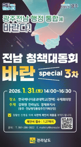 Àü³²µµ, 31ÀÏ ÇàÁ¤ÅëÇÕ ÁÖÁ¦ ûå´ëµ¿È¸¡¦27ÀϱîÁö Âü¿©ÀÚ Á¢¼ö