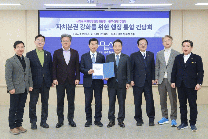 ±¤ÁÖ±¤¿ª½Ã±¸Ã»ÀåÇùÀÇȸ´Â 8ÀÏ ±¤ÁÖ µ¿±¸Ã»¿¡¼ ´ëÀü±¤¿ª½Ã Áß±¸Ã»À塤À¯¼º±¸Ã»Àå°ú ÇÔ²² ½ÅÁ¤ÈÆ ±¹È¸ ÇàÁ¤¾ÈÀüÀ§¿øÀå°ú °£´ãȸ¸¦ °®°í, ±¤¿ª ÇàÁ¤ÅëÇÕ ÃßÁø ¹æÇâ°ú °ü·ÃÇØ ÀÚÄ¡±¸ÀÇ ÀÚÄ¡±ÇÀÌ ½ÇÁúÀûÀ¸·Î º¸ÀåµÉ ¼ö ÀÖµµ·Ï ÅëÇÕÆ¯º°¹ý¿¡ ¹Ý¿µÇØ ÁÙ °ÍÀ» °ÇÀÇÇß´Ù°í ¹àÇû´Ù.