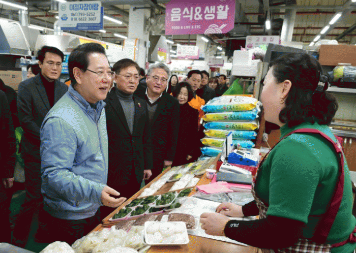 ±è¿µ·Ï Àü¶ó³²µµÁö»ç´Â 13Àϰú 16ÀÏ ±¤¾ç Á߸¶½ÃÀå°ú ¿©¼ö ¼­½ÃÀåÁÖº¯½ÃÀåÀ» ¹æ¹®, ¹°°¡ »ó½Â°ú °í±Ý¸® µî¿¡ µû¸¥ ¼Òºñ½É¸® À§ÃàÀ¸·Î ¾î·Á¿î »óÀεéÀ» °Ý·ÁÇϰí Áö¿ª»ç¶û»óǰ±ÇÀ¸·Î À庸±â Çà»ç¸¦ ÆîÄ£´Ù. ±è¿µ·Ï Áö»ç´Â 13ÀÏ ¸íÀý ¹°°¡ µ¿ÇâÀ» »ìÇǸç Àü³²¡¤±¤ÁÖ ÅëÇÕ ÃßÁø¿¡ µû¸¥ ¹Î»ý°æÁ¦ Áö¿ø ´ëÃ¥À» ¼³¸íÇϰí, Áö¿ª»ç¶û»óǰ±ÇÀ¸·Î ¼³ Á¦¼ö¿ëǰ°ú Áö¿ªÆ¯»êǰÀ» ±¸¸ÅÇÏ¸ç »óÀεéÀ» °Ý·ÁÇÏ°í ¾Ö·Î»çÇ×À» ûÃëÇß´Ù. ƯÈ÷ ½ÃÀå »óÀεé°ú ¼ÒÅëÇϸç Áö¿ª°æÁ¦ÀÇ ±Ù°£ÀÎ ½ÃÀå »óÀεéÀÌ ¾ÈÁ¤ÀûÀ¸·Î ¿µ¾÷ÇÏ°í ¹øÃ¢Çϵµ·Ï Àû±Ø Áö¿øÇÒ °ÍÀÓÀ» ¹àÇû´Ù. ÀüÅë½ÃÀåÀ» ãÀº À̿밴°ú Àλ縦 ³ª´©¸ç ³Ë³ËÇÑ ÀνÉÀÌ ÀÖ´Â ÀüÅë½ÃÀå¿¡ ÀÚÁÖ ¹æ¹®ÇÒ °ÍÀ» ±ÇÀåÇÏ°í °¡Á·°ú ÇÔ²² °Ç°­Çϰí dz¿ä·Î¿î ¸íÀýÀ» º¸³»±æ ¹Ù¶ó´Â ´ö´ãµµ ³ª´³´Ù. ±è¿µ·Ï Áö»ç´Â ¡°Áö¿ª°æÁ¦¿Í Á÷°áµÈ °ø°£ÀÎ ÀüÅë½ÃÀå Ȱ¼ºÈ­ ½ÃÃ¥À» Àû±Ø ¹ß±¼Çϰí Áö¿ª ¼Ò»ó°øÀΰú ¼ÒÅëÀ» °­È­ÇÒ °Í¡±À̶ó¸ç ¡°µµ¹Îµé²²¼­ Áö¿ª ÀüÅë½ÃÀåÀÌ È°±â¸¦ ãµµ·Ï ¸¹ÀÌ ÀÌ¿ëÇÏ±æ ºÎŹµå¸°´Ù¡±°í ¸»Çß´Ù.