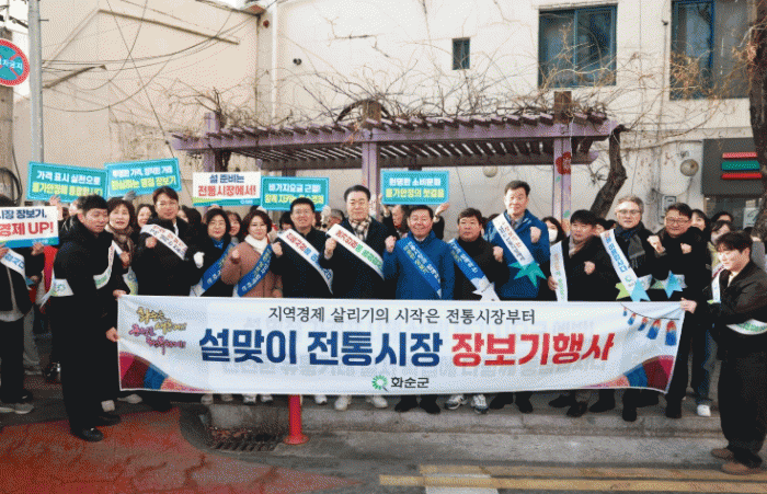 È­¼ø±ºÀº 13ÀÏ ¼³ ¸íÀýÀ» ¾ÕµÎ°í È­¼ø°íÀε¹ÀüÅë½ÃÀå¿¡¼­ ½ÃÀå Ȱ¼ºÈ­ ¹× ¹°°¡¾ÈÁ¤À» À§ÇÑ À庸±â Çà»ç¸¦ ÁøÇàÇß´Ù°í ¹àÇû´Ù. À̳¯ ±¸º¹±Ô È­¼ø±º¼ö¸¦ ºñ·ÔÇØ È­¼ø±ºÀÇȸ, È­¼ø°æÂû¼­, È­¼ø±³À°Áö¿øÃ», È­¼ø¼Ò¹æ¼­, ³óÇù È­¼ø±ºÁöºÎ µî °ü³» ±â°ü¡¤´ÜüÀå°ú °ü°èÀÚ 100¿© ¸íÀÌ Âü¼®Çß´Ù. Âü¼®ÀÚµéÀº ¹ÎÁ· °íÀ¯ ¸íÀýÀÎ ¼³À» ¸Â¾Æ ½ÃÀå »óÀεéÀÇ ¾î·Á¿òÀ» ÇÔ²² ³ª´©°í ¹Î»ý °æÁ¦ ȸº¹À» À§ÇØ ÀüÅë½ÃÀå À庸±â¿¡ ³ª¼¹´Ù. È­¼ø»ç¶û»óǰ±ÇÀ¸·Î Á¦¼ö¿ëǰ°ú ³ó»ê¹°À» ±¸¸ÅÇÏ°í »óÀεé°ú ´ö´ãÀ» ³ª´©¸ç ÇöÀå ¼ÒÅëÀÇ ½Ã°£À» °¡Á³´Ù. ¾Æ¿ï·¯ ÀüÅë½ÃÀå À庸±â Çà»ç¿Í ¹°°¡¾ÈÁ¤ Ä·ÆäÀεµ ÇÔ²² Àü°³ÇØ Àǹ̸¦ ´õÇß´Ù. ¶ÇÇÑ È­¼ø±ºÃ» °¢ ½Ç°ú¼Ò ¹× À¾¡¤¸é ÇàÁ¤º¹Áö¼¾ÅÍ ¼Ò¼Ó Á÷¿øµéÀº °ü³» ÀüÅë½ÃÀå 6°÷¿¡¼­ ºÎ¼­º° ¿©°Ç¿¡ ¸Â´Â À庸±â Çà»ç¸¦ ÃßÁøÇϸç Áö¿ª »ó±Ç Ȱ¼ºÈ­¿¡ µ¿ÂüÇß´Ù. ±¸º¹±Ô ±º¼ö´Â ¡°Àå±âÀûÀÎ °æ±â ħü¿Í ¹°°¡ »ó½ÂÀ¸·Î ¾î·Á¿òÀ» °Þ´Â »óÀε鿡°Ô Á¶±ÝÀ̳ª¸¶ µµ¿òÀÌ µÇ±æ ¹Ù¶ó´Â ¸¶À½À¸·Î À̹ø Çà»ç¸¦ ¸¶·ÃÇß´Ù¡±¶ó¸ç, ¡°¼³ ¸íÀýÀ» ¸Â¾Æ ±º¹Î ¿©·¯ºÐ²²¼­µµ ÀüÅë½ÃÀåÀ» ¸¹ÀÌ ÀÌ¿ëÇØ ÁÖ½Ã±æ ºÎŹµå¸°´Ù¡±¶ó°í ¸»Çß´Ù.