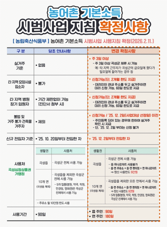 Àü³² °î¼º±ºÀº ³ó¸²Ãà»ê½ÄǰºÎÀÇ ³ó¾îÃÌ ±âº»¼Òµæ ½ÃÇà Áöħ È®Á¤¿¡ µû¶ó °ÅÁÖ ±âÁذú Áö±Þ ´ë»ó, »ç¿ëó ±âÁØ µîÀÌ ÀϺΠº¯°æµÆ´Ù°í 23ÀÏ ¹àÇû´Ù.