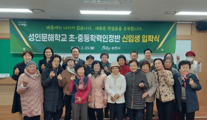 ¼øÃµ½Ã´Â Áö³­ 23ÀÏ ¼øÃµ½Ã Æò»ýÇнÀ°ü¿¡¼­ 2026³â ¼ºÀι®ÇØÇб³ ÀÔÇнÄÀ» °³ÃÖÇϰí ÃʵîÇзÂÀÎÁ¤¹Ý 12¸í, ÁßµîÇзÂÀÎÁ¤¹Ý 15¸í µî ÃÑ 27¸íÀÇ ½ÅÀÔ»ýÀ» ¸ÂÀÌÇß´Ù. À̹ø ÀÔÇнÄÀº ¹è¿òÀÇ ±âȸ¸¦ ³õÃÆ´ø ÇнÀÀÚµéÀÌ ´Ù½Ã ±³½Ç·Î µ¹¾Æ¿Í Çо÷ÀÇ ²ÞÀ» À̾´Â ¶æ±íÀº ÀÚ¸®·Î ¸¶·ÃµÆ´Ù. Æò±Õ ¿¬·É 75¼¼ÀÇ ½ÅÀÔ»ýµéÀº ´ÊÀº ³ªÀÌ¿¡µµ ¹è¿ò¿¡ ´ëÇÑ ¿­Á¤À» º¸¿©ÁÖ¸ç ÇöÀå¿¡ µû¶æÇÑ °¨µ¿À» ÀüÇß´Ù. ÀÔÇнĿ¡¼­´Â Áßµî 1´Ü°è ½ÅÀÔ»ý ´ëÇ¥°¡ ¼±¼­¹®À» ³¶µ¶ÇÏ¸ç ¡°¼­·Î °Ý·ÁÇÏ°í ³¡±îÁö Æ÷±âÇÏÁö ¾ÊÀ¸¸ç ¼º½ÇÈ÷ Çо÷¿¡ ÀÓÇϰڴ١±°í ´ÙÁüÇØ Å« ¹Ú¼ö¸¦ ¹Þ¾Ò´Ù. ÇÑÆí, ¼øÃµ½Ã´Â 2013³â ÃʵîÇзÂÀÎÁ¤¹ÝÀ» ½ÃÀÛÀ¸·Î 2017³â ÁßµîÇзÂÀÎÁ¤¹ÝÀ» °³¼³ÇØ Áö¼ÓÀûÀ¸·Î ¿î¿µÇØ ¿À°í ÀÖ´Ù. ±×µ¿¾È ÃʵîÇз 121¸í, ÁßµîÇз 46¸í µî ÃÑ 167¸íÀÌ ÇзÂÀ» ÀÎÁ¤¹ÞÀ¸¸ç ¸¸ÇÐÀÇ °á½ÇÀ» ¸Î¾ú´Ù. ¿ÃÇØ´Â Ãʵî 1¡¤2¡¤3´Ü°è¿Í Áßµî 1¡¤2´Ü°è µî ÃÑ 5°³ °úÁ¤À» ¿î¿µÇϸç, 3³â °úÁ¤À» À̼öÇϸé ÃÊ¡¤Áßµî ÇзÂÀ» ÀÎÁ¤¹ÞÀ» ¼ö ÀÖ´Ù. ½Ã °ü°èÀÚ´Â ¡°¾ÕÀ¸·Îµµ ´Ù¾çÇÑ ¸ÂÃãÇü Æò»ý±³À° ÇÁ·Î±×·¥À» ÅëÇØ ¹è¿òÀÌ ÀÏ»óÀÌ µÇ´Â ÇнÀµµ½Ã Á¶¼º¿¡ Èû¾²°Ú´Ù¡±°í ¹àÇû´Ù.