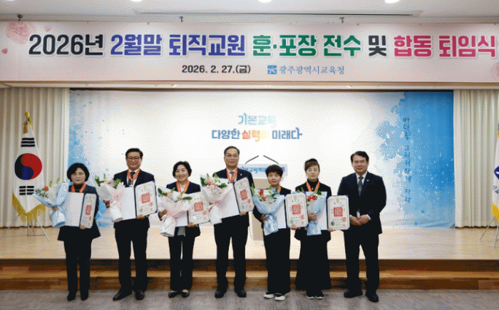 ±¤Áֽñ³À°Ã»Àº 27ÀÏ º»Ã» ´ëȸÀǽǿ¡¼­ 2¿ù ¸» Á¤³âÅðÁ÷ ±³¿ø°ú 8¿ù ¸» ¸í¿¹ÅðÁ÷ ¿¹Á¤ ±³¿øÀÌ Âü¼®ÇÑ °¡¿îµ¥ ¡®ÅðÁ÷±³¿ø ÈÆ¡¤Æ÷Àå Àü¼ö ¹× ÇÕµ¿ ÅðÀӽġ¯À» °³ÃÖÇß´Ù. À̹ø ÅðÀÓ½ÄÀº ÀçÁ÷±â°£ ±³À° ÇöÀå¿¡¼­ Çлý Áöµµ¿¡ Çå½ÅÇϰí, ¼º½Ç°ú ¿­Á¤À¸·Î Á÷¹«¸¦ ¼öÇàÇÑ ÅðÁ÷±³¿øÀÇ ¸í¿¹·Î¿î ÅðÀÓÀ» ÃàÇÏÇϱâ À§ÇØ ¸¶·ÃµÆ´Ù. ƯÈ÷ ¡ãȲÁ¶±ÙÁ¤ÈÆÀå 11¸í ¡ãÈ«Á¶±ÙÁ¤ÈÆÀå 26¸í ¡ã³ìÁ¶±ÙÁ¤ÈÆÀå 17¸í ¡ã¿ÁÁ¶±ÙÁ¤ÈÆÀå 22¸í ¡ã±ÙÁ¤Æ÷Àå 10¸í ¡ã´ëÅë·Éǥâ 4¸í ¡ã±³À°ºÎÀå°üǥâ 10¸í µî ÃÑ 100¸í¿¡ ´ëÇØ ÈÆ?Æ÷ÀåÀ» Àü¼öÇß´Ù. ȲÁ¶±ÙÁ¤ÈÆÀåÀ» Àü¼ö¹ÞÀº ±¤ÁÖ¼­ºÎ±³À°Áö¿øÃ» À̼ºÃ¶ ±³À°ÀåÀº ¡°±¤ÁÖ±³À° ¹ßÀüÀÇ ÇÑ ÃàÀ» ´ã´çÇß´Ù´Â ÀںνÉÀ¸·Î °¡½¿ÀÌ ¹÷Â÷ ¿À¸¥´Ù¡±¸ç ¡°ÈÄ¹è ±³¿øµéÀÇ ¾Õ³¯¿¡ Àλý¿¡¼­ °¡Àå ¾Æ¸§´Ù¿î ¼ø°£ÀÎ È­¾ç¿¬È­(ü£åÆÒ´ü¤)°¡ ÇÔ²²Çϱ⸦ Áø½ÉÀ¸·Î ±â¿øÇÑ´Ù¡°°í ¼Òȸ¸¦ ¹àÇû´Ù. ÀÌÁ¤¼± ±³À°°¨Àº ¡°±³»çµéÀÇ ¶ß°Å¿î ¿­Á¤ ´öºÐ¿¡ ±¤ÁÖ ±³À°ÀÇ ¸£³×»ó½º ½Ã´ë°¡ Ȱ¦ ¿­·È´Ù¡±¸ç ¡°±×µ¿¾ÈÀÇ Çå½Å¿¡ ¸Ó¸® ¼÷¿© °¨»çµå¸°´Ù¡±°í ¸»Çß´Ù.