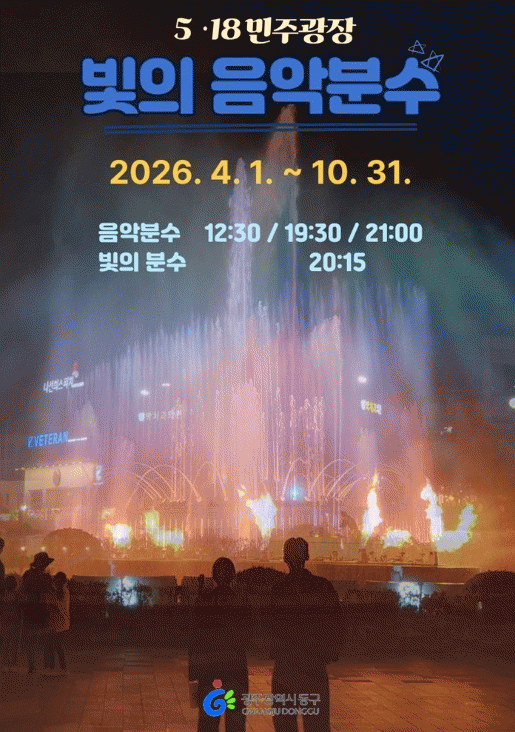 ±¤ÁÖ µ¿±¸´Â ½Ã¹Î°ú °ü±¤°´¿¡°Ô ´Ù¾çÇÑ º¼°Å¸®¿Í µµ½É ¼Ó ÈÞ½Ä °ø°£À» Á¦°øÇϱâ À§ÇØ ¸¶·ÃÇÑ ºû°ú À½¾ÇÀÌ ¾î¿ì·¯Áø ¡®ºûÀÇ À½¾ÇºÐ¼ö¡¯¸¦ 4¿ùºÎÅÍ 10¿ù±îÁö ¿î¿µÇÑ´Ù°í ¹àÇû´Ù. 5¡¤18¹ÎÁÖ±¤ÀåÀÇ ´ëÇ¥ ¾ß°£ °æ°ü ÄÜÅÙÃ÷ÀÎ ¡®ºûÀÇ À½¾ÇºÐ¼ö¡¯´Â È­·ÁÇÑ ºÐ¼ö ¿¬Ãâ°ú À½¾ÇÀ» °áÇÕÇÑ °ø¿¬Çü ºÐ¼ö·Î, ±¤ÁÖ ¹ÎÁÖÈ­¿îµ¿ÀÇ Áß½ÉÀÌÀÚ »ó¡ °ø°£ÀÎ 5¡¤18¹ÎÁÖ±¤ÀåÀ» ã´Â ½Ã¹Î°ú °ü±¤°´¿¡°Ô »ö´Ù¸¥ º¼°Å¸®¸¦ ¼±»çÇÒ ¿¹Á¤ÀÌ´Ù. ÇöÀç ¡®ºûÀÇ À½¾ÇºÐ¼ö¡¯´Â 4¿ù Á¤½Ä °¡µ¿¿¡ ¾Õ¼­ ½Ã½ºÅÛ Á¡°Ë°ú ½ÃÇè ¿î¿µÀ» ÁøÇà ÁßÀ̸ç, ±Ý³²·Î ¡®Â÷ ¾ø´Â °Å¸®¡¯°¡ ½ÃÇàµÇ´Â 4ÀÏ ¿ÃÇØ ù¼±À» º¸ÀδÙ. À½¾ÇºÐ¼ö´Â ÇÏ·ç 3ȸ(12:30/19:30/21:00) ¿î¿µµÉ ¿¹Á¤À̸ç, 4¿ù Áß¼øºÎÅÍ´Â ½Ã¹Îµé¿¡°Ô Ä£¼÷ÇÑ À½¾ÇÀ» Áß½ÉÀ¸·Î ½Å±Ô ¿¬Ãâ°îÀ» Ãß°¡ÇØ ´õ¿í ´Ùä·Ó°í ¿ªµ¿ÀûÀÎ °ø¿¬À» ¼±º¸ÀÏ °èȹÀÌ´Ù. µ¿±¸´Â À̸¦ ÅëÇØ °ü¶÷ ¸¸Á·µµ¸¦ ³ôÀ̰í, ±¤ÀåÀ» ã´Â Áñ°Å¿òÀ» ÇÑÃþ Ű¿î´Ù´Â ±¸»óÀÌ´Ù. ±¤ÀåÀ» ¾Æ¸§´ä°Ô ¼ö³õ´Â ¡®ºûÀÇ ºÐ¼ö¡¯ ¿¬Ãâµµ ½Ã¹ÎµéÀÇ ´«±æÀ» »ç·ÎÀâÀ» °ÍÀ¸·Î º¸ÀδÙ. ºûÀÇ ºÐ¼ö´Â ¸ÅÀÏ Àú³á 8½Ã 15ºÐ¿¡ ¿î¿µµÇ¸ç, ±¤Àå ¹Ù´Ú ÇÁ·ÎÁ§¼Ç ¸ÊÇÎ, ¿öÅÍ ½ºÅ©¸°, ºöÇÁ·ÎÁ§ÅÍ µîÀ» Ȱ¿ëÇÑ °¨¼ºÀûÀÎ ¹Ìµð¾î¾ÆÆ® °æ°ü ¿¬Ãâ·Î ¹æ¹®°´µé¿¡°Ô Ưº°ÇÑ ¾ß°æÀ» Á¦°øÇÒ °ÍÀ¸·Î ±â´ëµÈ´Ù. µ¿±¸ °ü°èÀÚ´Â ¡°5¡¤18¹ÎÁÖ±¤Àå ºûÀÇ À½¾ÇºÐ¼ö´Â ½Ã¹ÎµéÀÌ ÀÏ»ó ¼Ó¿¡¼­ ¹®È­¿Í ÈÞ½ÄÀ» ÇÔ²² Áñ±æ ¼ö ÀÖ´Â µµ½É ¼Ó ¸í¼Ò¡±¶ó¸ç ¡°¾ÕÀ¸·Îµµ ´Ù¾çÇÑ ¿¬Ãâ°ú ÄÜÅÙÃ÷¸¦ Áö¼ÓÀûÀ¸·Î ¹ß±¼ÇØ ½Ã¹Îµé¿¡°Ô ´õ¿í dz¼ºÇÑ º¼°Å¸®¿Í Áñ±æ °Å¸®¸¦ Á¦°øÇϰڴ١±°í ¸»Çß´Ù. ÇÑÆí ºûÀÇ À½¾ÇºÐ¼ö´Â ¸ÅÁÖ ¿ù¿äÀÏ ½Ã¼³ Á¡°ËÀ» À§ÇØ ¿î¿µÀ» ½¬¸ç, ±â»ó »óȲ ¹× ±¤Àå Çà»ç ÀÏÁ¤ µî¿¡ µû¶ó ¿î¿µ ½Ã°£ÀÌ Åº·ÂÀûÀ¸·Î Á¶Á¤µÉ ¼ö ÀÖ´Ù. ¿î¿µ ÀÏÁ¤°ú º¯µ¿ »çÇ×Àº ±¤ÁÖ µ¿±¸Ã» ´©¸®Áý ¡®»õ¼Ò½Ä¡¯¿¡¼­ È®ÀÎÇÒ ¼ö ÀÖ´Ù.