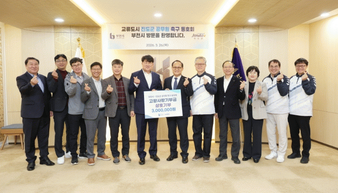 Áøµµ±º°ú ºÎõ½Ã°¡ Àڸŵµ½Ã °£ ±³·ù¸¦ Ȱ¼ºÈ­Çϱâ À§ÇØ ÃßÁøÇÑ ¡®Ã౸µ¿È£È¸ Ä£¼± ±³·ù Çà»ç¡¯¿¡¼­ °íÇâ»ç¶û±âºÎ±Ý 300¸¸ ¿øÀ» »óÈ£ ±âºÎÇϸç, ¾ç ÁöÀÚü °£ÀÇ Çù·Â °ü°è¸¦ ÇÑÃþ °­È­Çß´Ù. ÃÖ±Ù Áøµµ±º Ã౸µ¿È£È¸´Â ºÎõ½Ã¸¦ ¹æ¹®ÇØ Ã౸µ¿È£È¸ °£ Ä£¼± ±³·ù Çà»ç¸¦ ÁøÇàÇß´Ù. À̹ø ±³·ù´Â µ¿È£È¸ Ȱµ¿À» ÅëÇØ Àڸŵµ½Ã °£ÀÇ ¹®È­, üÀ°, Ãë¹Ì ºÐ¾ß¿¡ ´ëÇÑ ±³·ù¸¦ Ȱ¼ºÈ­Çϰí, Áö¿ª °£ÀÇ »ó»ý ¹ßÀü°ú Áö¼ÓÀûÀÎ Çù·Â °ü°è¸¦ ±¸ÃàÇϱâ À§ÇØ ¸¶·ÃµÆ´Ù. ÁÖ¿ä Çà»ç·Î´Â Ã౸µ¿È£È¸ °£ Ä£¼±°æ±â, ºÎõ½Ã ÁÖ¿ä ½Ã¼³¿¡ ´ëÇÑ °ßÇÐ, ¾ç ÁöÀÚü °£ °íÇâ»ç¶û±âºÎ±Ý »óÈ£ ±âºÎ½ÄÀÌ ÁøÇàµÆ´Ù. ÇÑÆí, ºÎõ½Ãû 1Ãþ¿¡¼­´Â Áøµµ±º Ư»êǰÀ» È«º¸ÇÏ°í ÆÇ¸ÅÇÏ´Â Çà»ç°¡ ¿­·Á ¹æ¹®°´µéÀÇ Å« °ü½ÉÀ» ²ø¾úÀ¸¸ç, ÇöÀå¿¡¼­ °íÇâ»ç¶û±âºÎÁ¦ ±âºÎ Çà»çµµ ÇÔ²² ÁøÇàÇØ Áøµµ±ºÀÇ ´ä·Êǰ°ú °íÇâ»ç¶û±âºÎÁ¦¸¦ È«º¸Çß´Ù. Áøµµ±º °ü°èÀÚ´Â ¡°Àڸŵµ½Ã °£ üÀ° ±³·ù¸¦ ÅëÇØ »óÈ£ À¯´ë°¨À» ³ôÀÌ°í °íÇâ»ç¶û±âºÎÁ¦¿Í Áö¿ª Ư»êǰ È«º¸±îÁö ¿¬°èÇØ ÀÇ¹Ì ÀÖ´Â ¼º°ú¸¦ °Åµ×´Ù¡±¶ó¸ç, ¡°¾ÕÀ¸·Îµµ ´Ù¾çÇÑ ºÐ¾ß¿¡¼­ Áö¼ÓÀûÀÎ ±³·ù¸¦ À̾¸ç »ó»ý ¹ßÀüÀ» µµ¸ðÇϰڴ١±¶ó°í ¸»Çß´Ù.