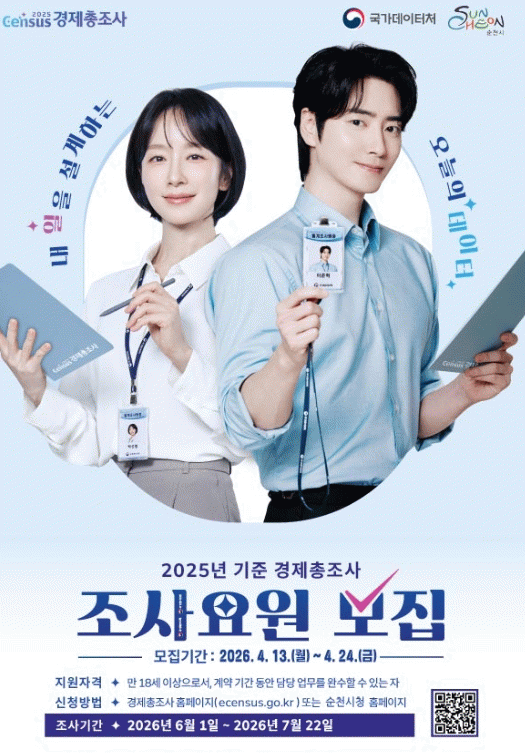 ¼øÃµ½Ã´Â ¿À´Â 6¿ùºÎÅÍ ½Ç½ÃµÇ´Â 2025³â ±âÁØ °æÁ¦ÃÑÁ¶»ç ¾÷¹«¸¦ ¼öÇàÇÒ Á¶»ç¿ä¿øÀ» ¿À´Â 13ÀϺÎÅÍ ¸ðÁýÇÑ´Ù°í ¹àÇû´Ù. ¸ðÁý ±Ô¸ð´Â ÃÑ 71¸íÀ¸·Î Á¶»ç¾÷¹«¸¦ ÃѰýÇÏ´Â ÃѰü¸®ÀÚ 1¸í, Á¶»çÁö¿ø ¹× Á¶»ç¿ø °ü¸®¸¦ ´ã´çÇÒ Á¶»ç°ü¸®ÀÚ 12¸í, ÅëÇÕ°ü¸®½Ã½ºÅÛ ¾÷¹« µî °æÁ¦ÃÑÁ¶»ç¸¦ º¸Á¶ÇÒ Á¶»çÁö¿ø´ã´çÀÚ 3¸í°ú Á÷Á¢ »ç¾÷ü¸¦ ¹æ¹®ÇØ Á¶»çÇ¥¸¦ ÀÛ¼ºÇÒ Á¶»ç¿ø 55¸íÀÌ´Ù. Á¶»ç¿ä¿ø ÀÀ½Ã ´ë»óÀº ¸¸ 18¼¼ ÀÌ»óÀ¸·Î Åë°è ¾÷¹«¿¡ Àü³äÇÒ ¼ö ÀÖ´Â »ç¸í°¨°ú Ã¥ÀÓ°¨ÀÌ ³ôÀº Àڷμ­ Á¶»ç ¹æ¹ýÀÌ Á¾ÀÌ Á¶»çÇ¥ ´ë½Å ÅÂºí¸´À» Ȱ¿ëÇÑ ÀüÀÚ Á¶»ç¹æ½ÄÀ¸·Î ½º¸¶Æ®±â±â »ç¿ë¿¡ ´É¼÷ÇØ¾ß ÇÑ´Ù. ¸ðÁý °ø°í´Â °æÁ¦ÃÑÁ¶»ç ȨÆäÀÌÁö¿Í ¼øÃµ½Ã ȨÆäÀÌÁö¸¦ ÅëÇØ È®ÀÎÇÒ ¼ö ÀÖÀ¸¸ç, 24ÀϱîÁö ÀÎÅͳÝ(°æÁ¦ÃÑÁ¶»ç ȨÆäÀÌÁö) ¶Ç´Â ¼øÃµ½Ã µðÁöÅÐÁ¤Ã¥°ú·Î ¹æ¹® Á¢¼öÇÏ¸é µÈ´Ù. ½Ã °ü°èÀÚ´Â ¡°¿À´Â 6¿ù ½Ç½ÃµÇ´Â °æÁ¦ÃÑÁ¶»ç°¡ ¼º°øÀûÀ¸·Î ÁøÇàµÉ ¼ö ÀÖµµ·Ï »ç¸í°¨°ú Ã¥ÀÓ°¨À» °¡Áö°í Á¶»ç ¾÷¹«¸¦ ¼öÇàÇØ ÁÙ ½Ã¹Î ¿©·¯ºÐÀÇ ¸¹Àº °ü½É°ú ÇùÁ¶¸¦ ºÎʵ台´Ù¡±°í ¸»Çß´Ù. ÇÑÆí, °æÁ¦ÃÑÁ¶»ç´Â 5³â¸¶´Ù ½Ç½ÃµÇ´Â ±¹°¡ ±âº» Åë°èÁ¶»ç·Î, Àü±¹ÀÇ ¸ðµç »ç¾÷ü¸¦ ´ë»óÀ¸·Î °í¿ë, »ý»ê µî ±¸Á¶¸¦ ÆÄ¾ÇÇØ Á¤Ã¥ ±âÃÊÀÚ·á·Î Ȱ¿ëµÈ´Ù. ¿ÃÇØ Á¶»ç´Â 6¿ù 1ÀϺÎÅÍ 7¿ù 22ÀϱîÁö ÀÎÅÍ³Ý Á¶»ç ¶Ç´Â »ç¾÷ü ¹æ¹®Á¶»ç·Î ½Ç½ÃµÈ´Ù.