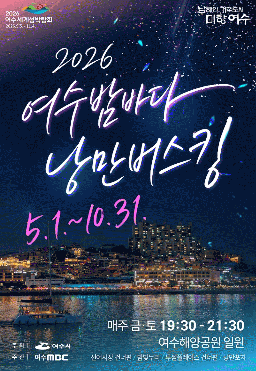 ¿©¼ö½Ã°¡ ÀÏ»ó ¼Ó ¹®È­ ÇâÀ¯ ±âȸ¸¦ È®´ëÇϰí ǰ°Ý ÀÖ´Â ¹®È­µµ½Ã Á¶¼ºÀ» À§ÇØ ¿À´Â 5¿ùºÎÅÍ ¡®2026 ³¶¸¸¹ö½ºÅ·¡¤Ã»Ãá¹ö½ºÅ·¡¯À» ¿î¿µÇÑ´Ù°í ¹àÇû´Ù. ¿ÃÇØ ¹ö½ºÅ·Àº ½Ã¹ÎµéÀÌ ¹®È­¿¹¼úÀ» º¸´Ù °¡±îÀÌ¿¡¼­ Áñ±æ ¼ö ÀÖµµ·Ï Áö³­Çغ¸´Ù ÇÑÃþ ´Ùä·Î¿î ÇÁ·Î±×·¥À¸·Î ±¸¼ºÇß´Ù. ¸ÕÀú ¡®³¶¸¸¹ö½ºÅ·¡¯Àº 5¿ù 1ÀϺÎÅÍ 10¿ù 31ÀϱîÁö ¸ÅÁÖ ±Ý¡¤Åä¿äÀÏ ¿ÀÈÄ 7½Ã 30ºÐºÎÅÍ ÇØ¾ç°ø¿ø°ú ³¶¸¸Æ÷Â÷ ÀÏ¿ø¿¡¼­ ÆîÃÄÁø´Ù. ½Ã´Â 4¿ù 20ÀϺÎÅÍ ¿­¸®´Â ¡®UN±âÈÄÁÖ°£¡¯ Çà»ç¿Í ¿¬°èÇØ ¿©¼ö¼¼°è¹Ú¶÷ȸÀå¿¡¼­ Ưº°ÇÑ ³¶¸¸¹ö½ºÅ· °ø¿¬À» ¼±º¸ÀδÙ. ¶ÇÇÑ 2026¿©¼ö¼¼°è¼¶¹Ú¶÷ȸ ±â°£¿¡´Â ¡®¼¶À¸·Î ã¾Æ°¡´Â ¹ö½ºÅ·¡¯µµ »õ·Ó°Ô ¿î¿µÇØ ¹Ú¶÷ȸ ºÐÀ§±â Á¶¼º¿¡ ±â¿©ÇÒ °èȹÀÌ´Ù. ¡®Ã»Ãá¹ö½ºÅ·¡¯Àº 5¿ù 2ÀϺÎÅÍ 10¿ù 31ÀϱîÁö ¸ÅÁÖ Åä¿äÀÏ ¿ÀÈÄ 7½Ã 30ºÐºÎÅÍ ¿©¹®¹®È­ÀÇ °Å¸®, ¿õõ »ó°¡, ¼ÒÈ£µ¿µ¿´Ù¸®¿¡¼­ ¿­¸°´Ù. ƯÈ÷ ¹®È­Ã¼À°°ü±¤ºÎÀÇ ¡®¹®È­°¡ ÀÖ´Â ³¯¡¯ È®´ë Á¤Ã¥¿¡ ¸ÂÃç ¸Å¿ù ù°¡¤¼Â° ÁÖ ¼ö¿äÀÏ¿¡µµ °ø¿¬À» Ãß°¡ Æí¼ºÇØ ½Ã¹ÎµéÀÇ Á¢±Ù¼ºÀ» ³ô¿´´Ù. Á¤Çö±¸ ¿©¼ö½ÃÀå ±ÇÇÑ´ëÇàÀº ¡°¿ÃÇØ ¹ö½ºÅ·Àº ¼¶ Áö¿ª±îÁö ¹«´ë¸¦ ³ÐÈ÷°í ½Ã¹ÎµéÀÌ »ýȰ °¡±îÀÌ¿¡¼­ ¹®È²¿¹¼úÀ» ´õ¿í ´©¸± ¼ö ÀÖµµ·Ï ÇÏ´Â µ¥ ÁßÁ¡À» µ×´Ù¡±¸ç ¡°¿©¼öÀÇ °Å¸® °ø¿¬ÀÌ Áö¿ª¿¡ »õ·Î¿î Ȱ·ÂÀ» ºÒ¾î³Ö´Â °è±â°¡ µÇ±æ ±â´ëÇÑ´Ù¡±°í ¸»Çß´Ù. ÇÑÆí, ½Ã´Â ¹ö½ºÅ·¿¡ Âü¿©ÇÒ °Å¸® ¿¹¼ú°¡¸¦ 4¿ù 13ÀϺÎÅÍ 30ÀϱîÁö ¸ðÁýÇÑ´Ù. ½Åû ¹æ¹ý µî ÀÚ¼¼ÇÑ ³»¿ëÀº ½Ã ´©¸®Áý °øÁö»çÇ׿¡¼­ È®ÀÎÇÒ ¼ö ÀÖ´Ù.