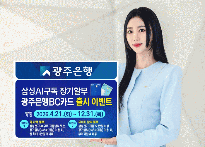 ±¤ÁÖÀºÇàÀº Ä«µå Ãâ½Ã¸¦ ±â³äÇØ 2026³â 12¿ù 31ÀϱîÁö À̺¥Æ®¸¦ ÁøÇàÇÑ´Ù. Çà»ç±â°£ µ¿¾È »ï¼º½ºÅä¾î¿¡¼ »ï¼ºÀüÀÚ Á¦Ç°À» AI ±¸µ¶Å¬·´À¸·Î ±¸¸ÅÇϰųª 24/36°³¿ù Àå±âÇҺηΠ±¸¸ÅÇÒ °æ¿ì, ¹«ÀÌÀÚ ÇҺΠÇýÅÃÀº ¹°·Ð ¸Å¿ù Ä«µå Àü¿ù½ÇÀû¿¡ µû¶ó AI ±¸µ¶ ÀÚµ¿³³ºÎ ¶Ç´Â Àå±âÇҺΠÀÌ¿ë ¹üÀ§ ³»¿¡¼ ±âº» ij½Ã¹é ±Ý¾×¿¡ 6,000¿øÀ» Ãß°¡ÇÏ¿© ¸Å¿ù ÃÖ´ë 2¸¸¿ø±îÁö ij½Ã¹é ÇýÅÃÀ» Á¦°øÇÑ´Ù.